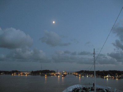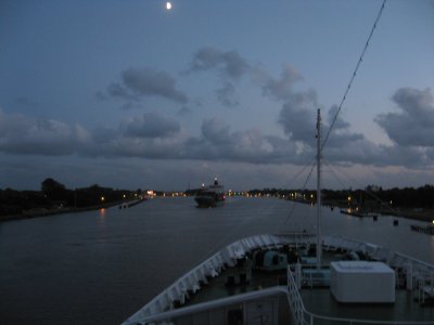 TS Maxim Gorkiy erreicht gegen 22.30Uhr die Schleuse von Brunsbüttel