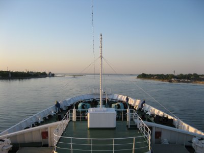 TS Maxim Gorkiy verlässt Baltijsk Richtung Riga.