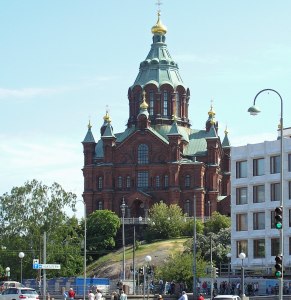 Uspenski-Kathedrale (Uspenskin katedraali, Orthodox, 1868 geweiht, auf Felsen am westl. Ende Halbinsel Katajanokka, 13 Kuppeln)