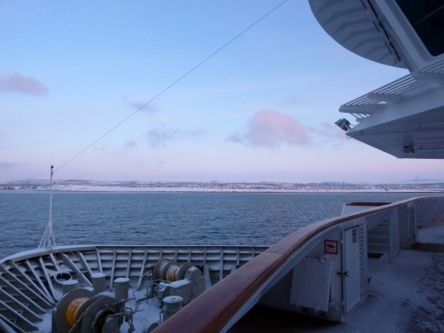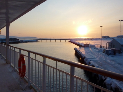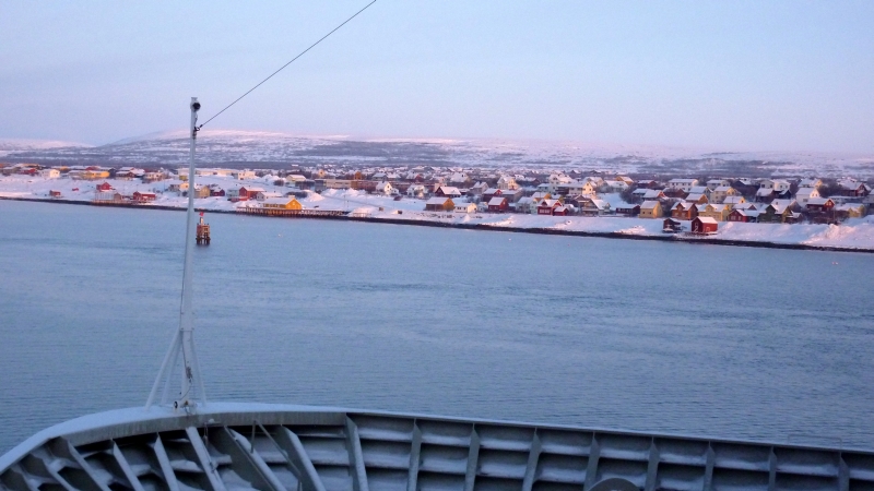 Unser erstes Tagesziel Vadsø kam kurz nach 7Uhr in Sicht.