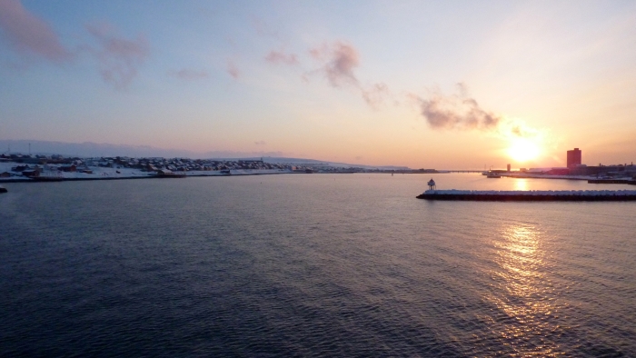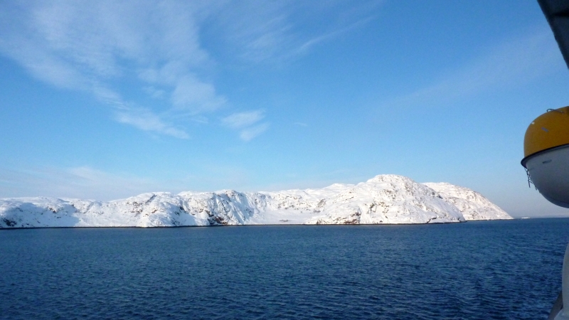 Gegen 9Uhr liefen wir in den 22km langen Bøkfjord ein, der Teil des Varangerfjordes ist und an dessen Ende sich Kirkenes befindet. Das Wetter zeigte sich von seiner schönsten Seite.