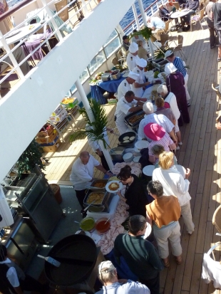 Der heutige Tag lud zum schlemmen und faulenzen ein. Bei strahlend blauem Himmel genossen viele Passagiere das Mittagessen an Deck.