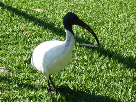 Australische Ibise laufen auf dem gesamten Gelände herum.