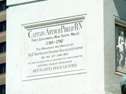 Nahe dem Palace Garden Gate (Royal Botanic Gardens) befindet sich ein Springbrunnen aus italienischem Mamor mit einer Bronzestatue von Captain Arthur Philip von 1897. Er war von 1788-1792 erster Governeur der neuen englischen Besitzung. Die Fundamente des Brunnens stellen die Säulen der damaligen Wirtschaft dar: Bergbau, Landwirtschaft, Handel und Seefahrt.