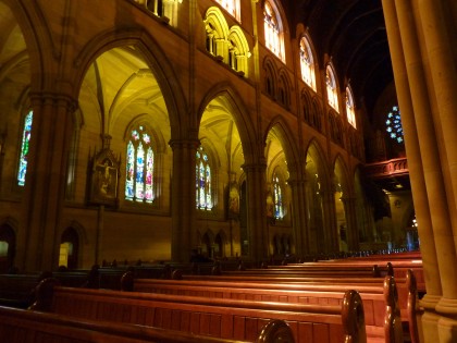 Die saint Mary´s Kathedrale ist die römisch-katholische Kathedrale und 1932 erhielt sie durch Papst Pius XI. den Titel Basilica minor. Das neogotische Gebäude aus Hawkesbury Sandstein besitzt zwei 74,6m hohe Türme. Der Grundstein für die 1. Kirche wurde 1821 vom Gouverneur Lachlan Macquarie gelegt und auf Grund eines Brandes 1865 wurde 1868 ein zweiter Grundstein gelegt. Endgültig vollendet wurde sie 2000 durch die Fertigstellung der Türme.