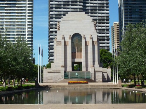 Durch eine Allee von Feigenbäumen (Avenue of fig trees) im Hyde Park gelangte ich zum ANZAC War Memorial (Gefallenen des 1. Weltkrieges), welches 1934 eröffnet wurde. Davor befindet sich der Pool of Reflections.