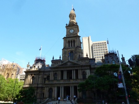 Entlang der Park Street laufe ich zur Sydney Town Hall (1868), die ich 12.30Uhr erreiche. Sie liegt auf dem Sydney Square und ist ein Symbol für Stil und Eleganz viktorianischer Baukunst.