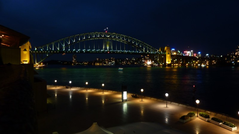 Die 15minütige Pause nutzte ich, um auf der Terrasse die beleuchtet Harbour Bridge zu fotographieren.