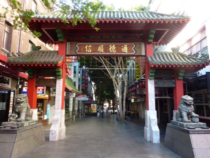 Durch die Dixon Street gelangte ich nach Chinatown, wo selbst die Klohäuschen einen chineschen Baustil aufweisen.