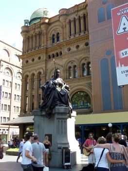 Vor dem Queen Victoria Building sitzt die Namensgeberin auf einem Denkmal und blickt auf das bunte Treiben zu ihren Füssen.