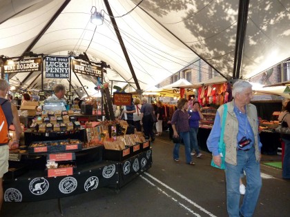 Am Samstag ist hier Markt. Hier kaufe ich auch meine letzten Andecken bevor ich zum späten Mittagessen zurück zum Schiff gehe.
