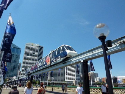 Über die 1902 erbaute Pyrmont Brigde verkehrt die Sydney Monorail. Die Bahn pendelt täglich in 5,50m Höhe auf einer Länge von 3,6km durch die Stadt.