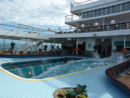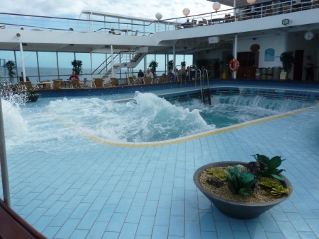 Ein zweiter Seetag in Folge - ausschlafen, lesen und sich sonnen sowie dem Spiel der Wellen auf unserem Pool zu schauen.