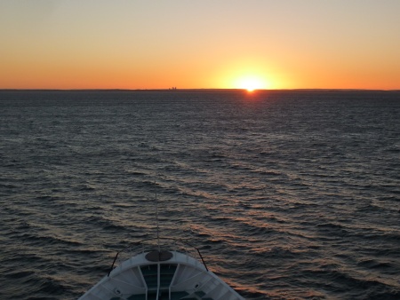 Um kurz nach 6Uhr ging im Osten die Sonne auf und wir nahmen kurs direkt auf den Hafen von Fremantle.
