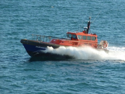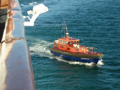 Kurs vor 7Uhr kam der Lotse an Bord.
