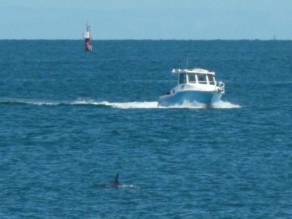 Dafür zeigte sich zu meiner Überraschung ein Delphin im Hafenbecken, aber meine Kamera war zu langsam.
