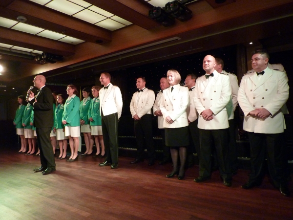 in meiner Kabine, um mich für das Kapitänswillkommen
