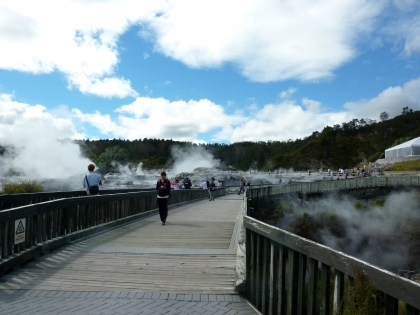 Auf Holzstegen geht es dann weiter zum berühmten Geysir Pohutu,