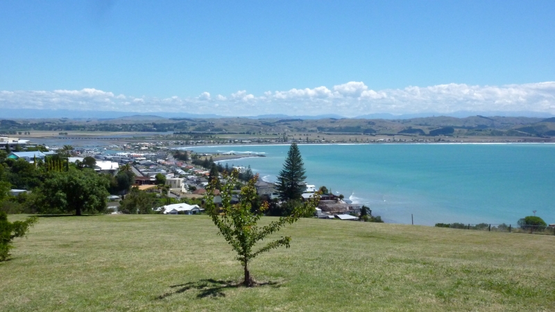 Oben angekommen bot sich ein schöner Blick auf den Hafen, Hawkes Bay und Hastings.