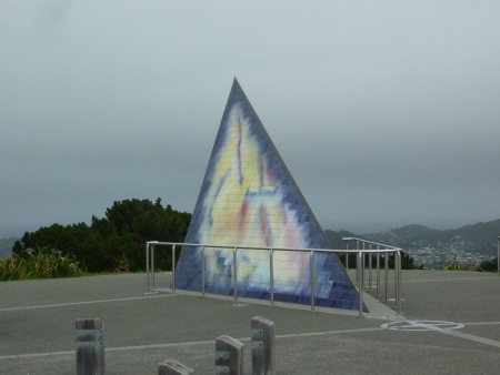 Auf dem Parkplatz befinden sich Informationstafeln zu Wellington sowie ein pyramidenförmiges Kunstwerk, welches sich mir nicht erschloss.