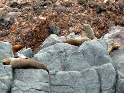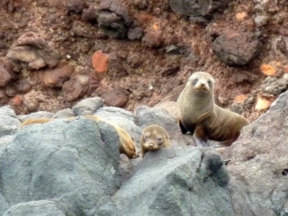 den Felsen im Meer leben mehrer Robbenfamilien.