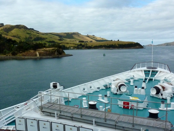 Mit dem Boot ging es durch die Bucht und man sah bereits den Taiaroa