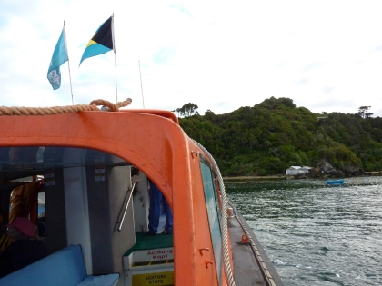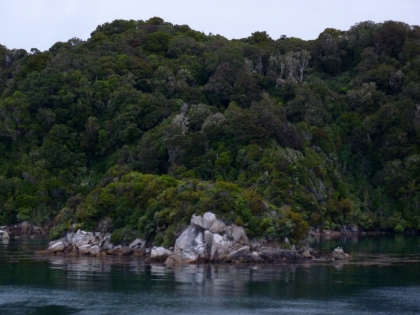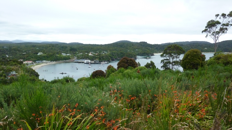Gegen 6.30Uhr erreichten wir Neuseelands dritte Insel - Stewart Island. Unser Liegeplatz war die Golden Bay. Schon bei der Einfahrt in die Bucht viel das üppige Grün auf, welches fast undurchdringlich schien.