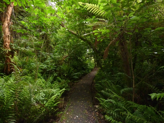 Durch teilweise dschungelartigen Bewuchs ging es bergab und bergauf. Und zwischendurch ein schöner Blick auf Oban.