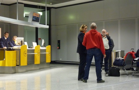 An unserem Gate trafen wir auf die spätere Kreuzfahrtdirektorin