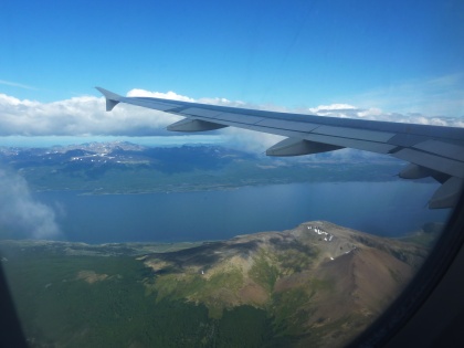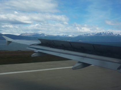 Leider wurde unser Charterflug um knapp 1,5h auf 11Uhr verlegt, aber um 11.25Uhr startete der Airbus 320 endlich gen Ushuaia.