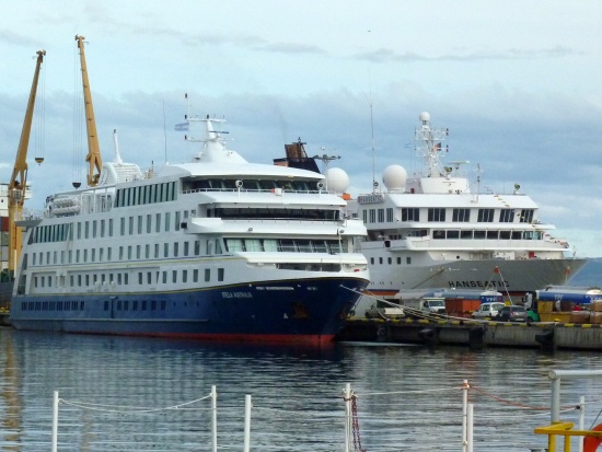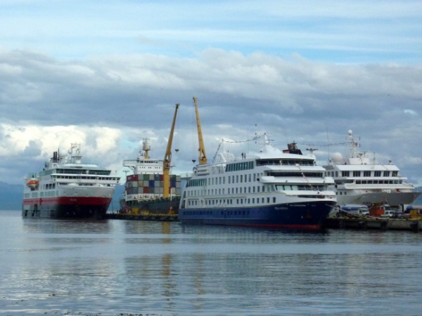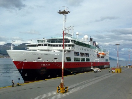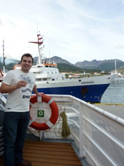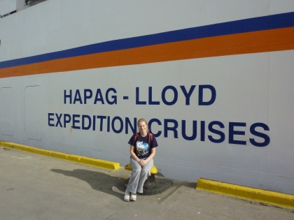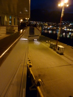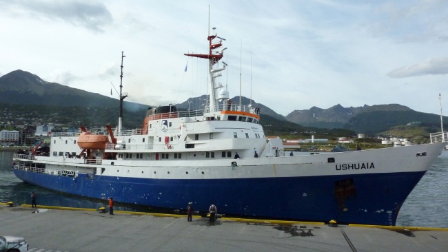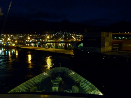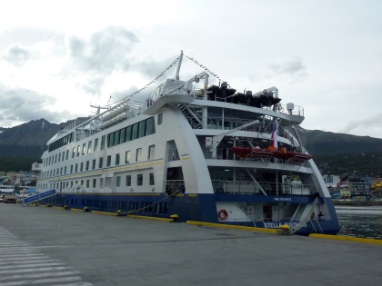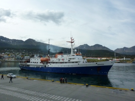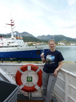 Durchs Fenster spähend sah ich, wie sich die Ushuaia zur Abfahrt bereit machte und glücklicherweise konnte man durch die Lounge aufs offene Heck treten.