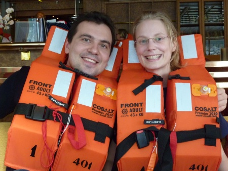 Wir blieben aber nur kurz in der Kabine, da ich unbedingt bis noch Souveniers und Ansichtskarten kaufen wollte. Im Eilschritt durchstöberten wir mehrere Shops, um pünktlich um 19.00Uhr zur Sicherheitsübung anwesend zu sein. Unsere Musterstation war die Observation Lounge. Hier wurden die englisch sprachigen Gäste separiert und von einem Lady Officer aufgeklärt.