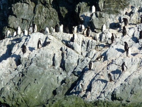 Überall auf den Felsen hocken Pinguine.