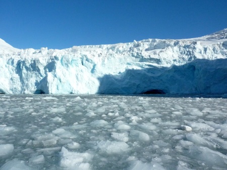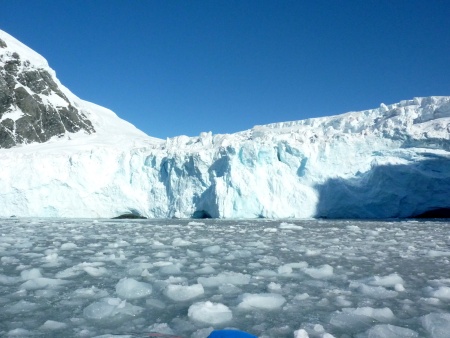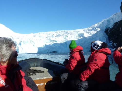 Nun nehmen wir Kurs auf den Gletscher und als wir ihm ganz nah sind, macht der Kapitän den Motor aus. Wir hören ein Knacken, Knirschen und Stille.