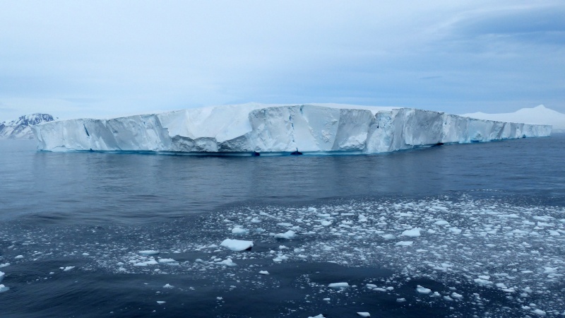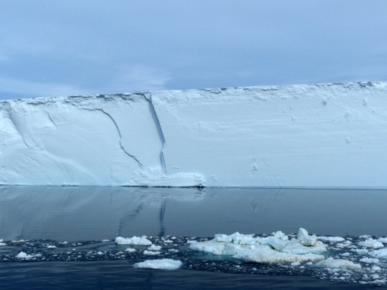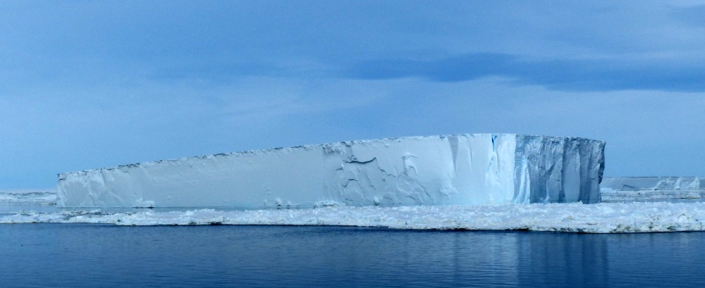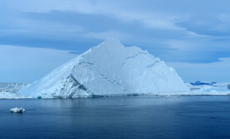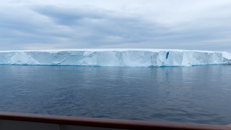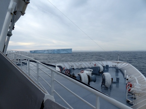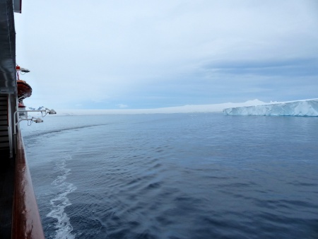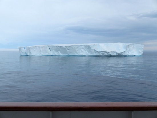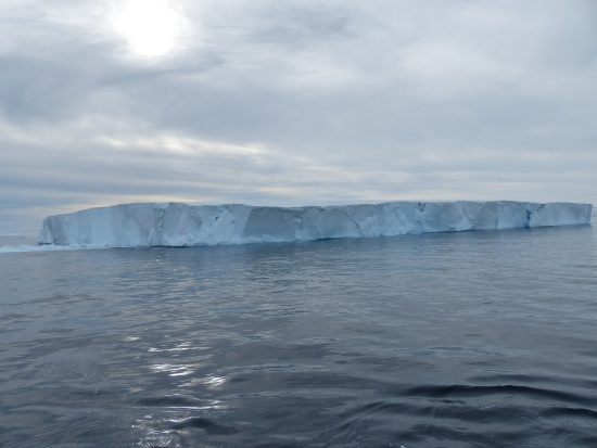 Etwas später kreuzt ein gewaltiger Eisberg mit einer Länge von einer nautischen Meile unseren Weg und unser Kapitän beschließt spontan diesen zu umrunden.