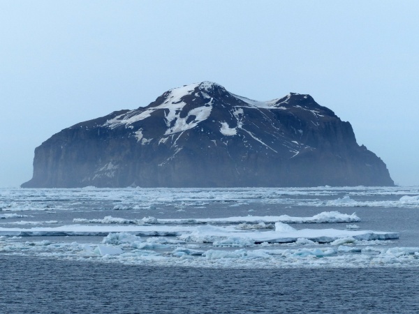 Gegen 11Uhr tauchte aus dem Nebel ein Überbleibsel eines ehemaligen Vulkans auf (63° 34'S, 56° 17'W), der einen Durchmesser von 1,9km hat. Der höchste Punkt dieser Insel ist 435m. Die Insel wurde während einer französischen Expedition zwischen 1837-1840 unter dem Kapitän Jules Dumont d´Urville entdeckt und nach dem Admiral Claude de Rosamel benannt, welcher der damalige Marineminister und Auftraggeber war.