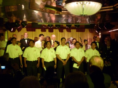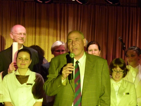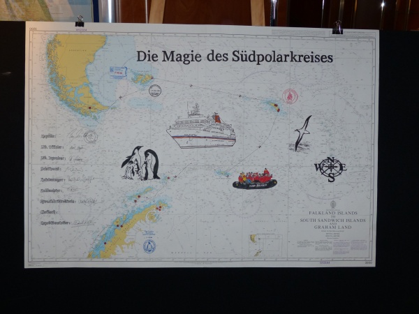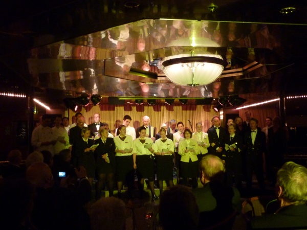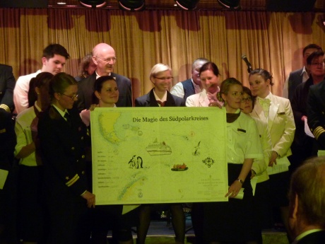 Danach ging es in die Explorer Lounge zum Hanseatic Chor und der Versteigerung der Seekarte. Selbst der Expeditionsleiter David Fletcher griff zum Mikrofon.