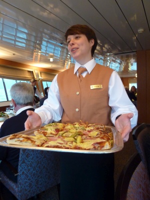 Das Abendessen war ein Wunsch unseres Tisches, denn nach 3 Wochen "Luxusküche" wollten wir was normales - PIZZA. Der Küchenchef erfüllte den Wunsch und viele Gäste regten neidisch den Kopf.