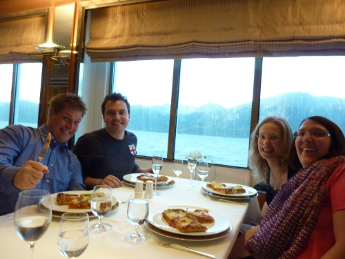 Während wir beim Abendessen saßen, musste ich nochmal raus, um die Silver Explorer zu fotographieren, die uns lautstark grüßte.