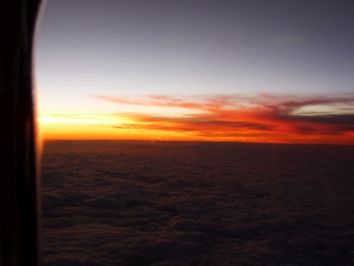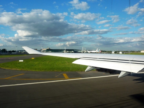 Um 18Uhr verließen wir mit dem Flugzeug die Parkposition und flogen mit einer Kapitänin zurück in die alte Welt.