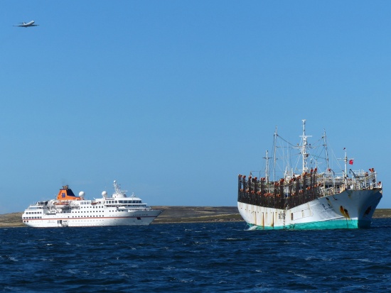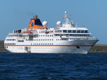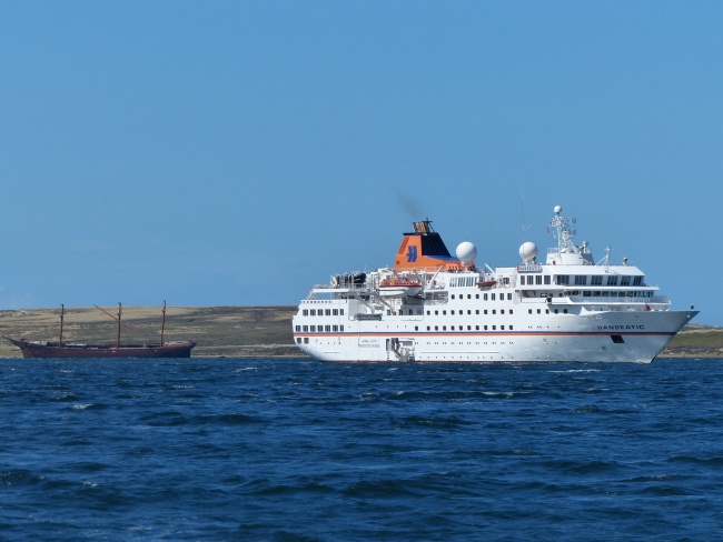 Das Wrack der Lady Elisabeth neben der modernen Hanseatic.