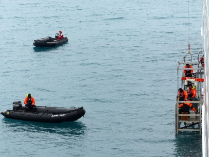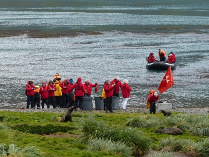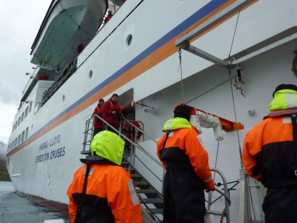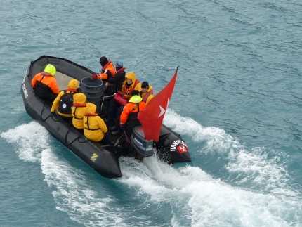 Ab 7.30Uhr werden die Zodiacs ins wasser gelassen und der Expeditionsleiter sowie die Lektoren fahren an Land, um alles notwendige vorzubereiten.