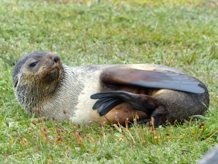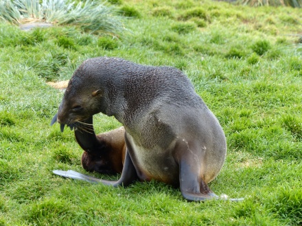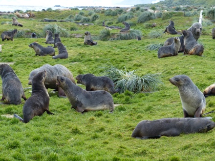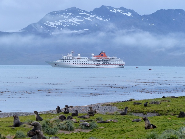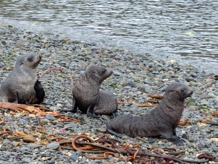 Hier wurden wir bereits durch junge Pelzrobbenbabys und Königspinguine begrüßt, die neugierig die Hanseatic beäugten.