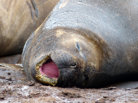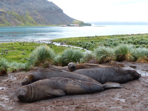 Neugierig wurden die "Rotjacken" von den Seeelefanten beäugt.
