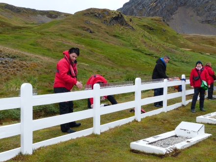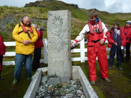 Es ist Tradition, dass der Kapitän am Grab eine kurze Rede hält und die Passagiere Shackleton zu Ehren einen Schluck Rum trinken.