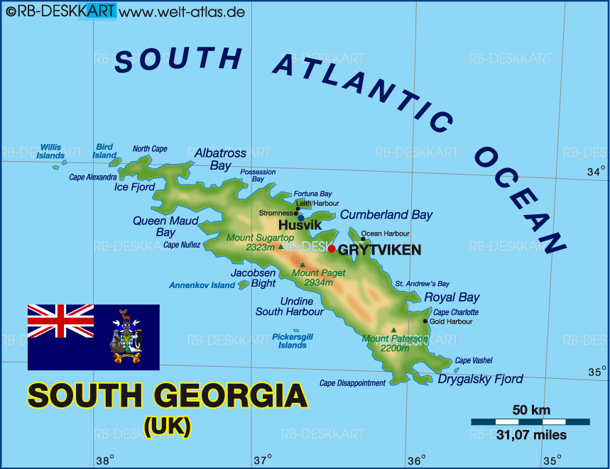 Schon seit der Nacht fahren wir an Südgeorgiens Ostküste vorbei. Das Gebiet zählt zum britischen Überseegebiet und liegt etwa 2.000 km östlich der Ostküste Südamerikas. Die Hauptinsel ist rund 160km lang und bis zu 30km breit. Eine Gebirgskette namens Allardyce Range durchzieht die Hauptinsel und die höchste Erhebung Mount Paget ist 2.934m hoch. Südgeorgien zählt auf Grund ihrer Lage südlich der antarktischen konvergenz zur Antarktis. Allerdings untersteht sie nicht dem Schutz des Antarktisvertrages da die Inselgruppe wiederum nördlich des 60. Breitengrades liegt.