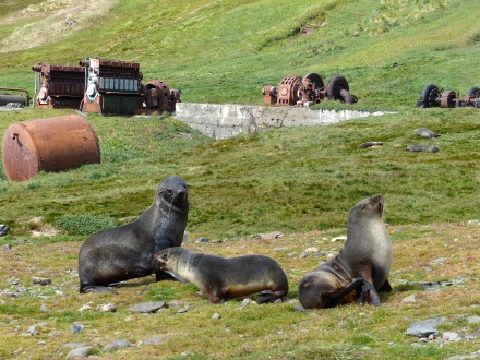 Es mutet fast surreal an, dass neues Leben von Pelzrobben sich zwischen den rostigen Hinterlassenschaften der Robbenjäger tummelt.