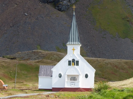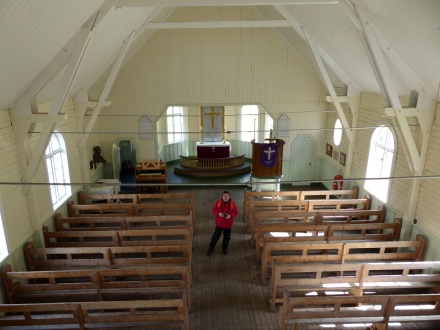 Die Kirche wurde aus Einzelteilen aus Norwegen per Schiff hierher geschafft, zusammengebaut und zum Weihnachtsfest 1913 geweiht.