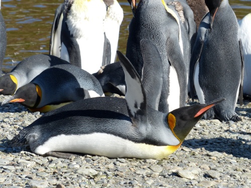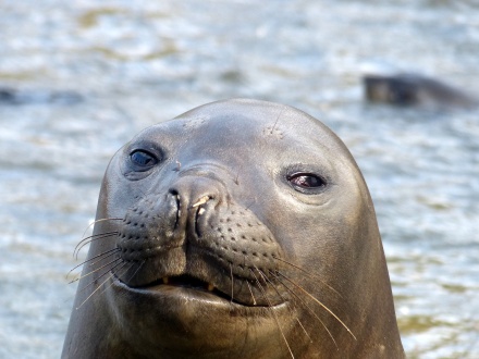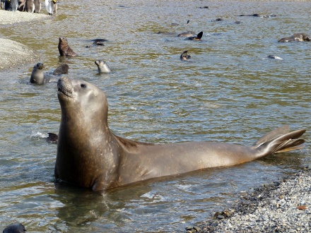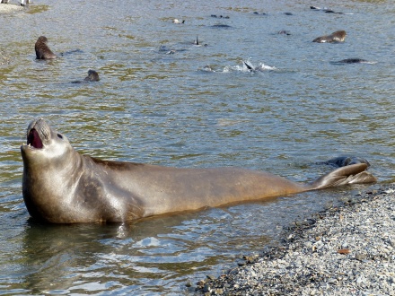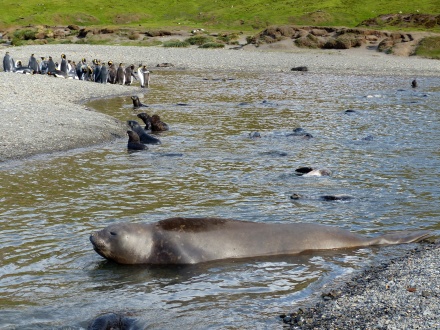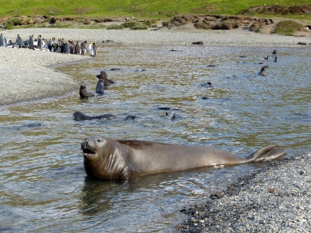 Ein Seeelefant hat sich aber inmitten eines kleinen Zulaufs zum Meer gelegt, durch den wir laufen mussten. Mir war das nicht geheuer...