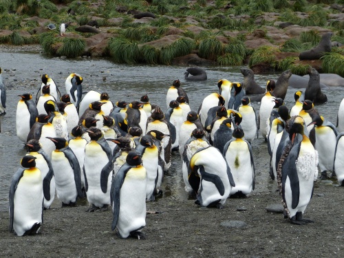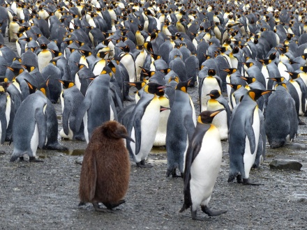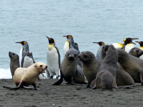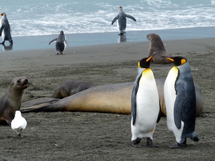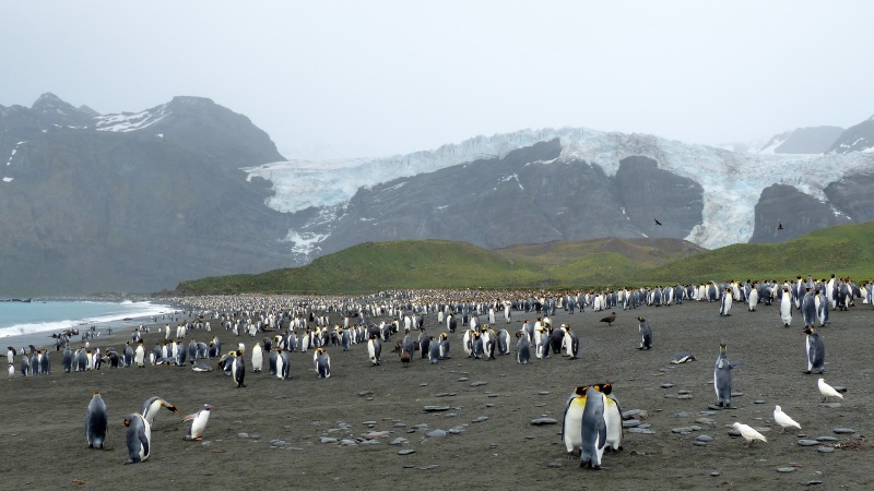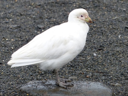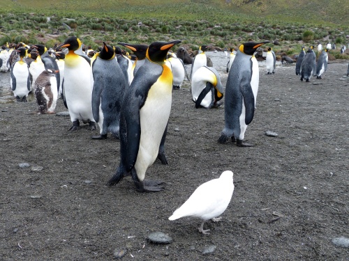 In der Kolonie sind eine Vielzahl von Vögeln zu sehen. Scheidenschnäbel sind Aaasfresser und sind immer unterwegs zwischen den Pinguinen.